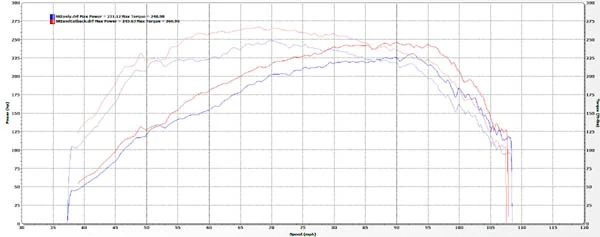 Thoroughly tested, this exhaust has peak power gains on the dyno that demonstrate an increase of 14 wheel horsepower over stock with only an added CorkSport Short Ram Intake modification on the tested vehicle.