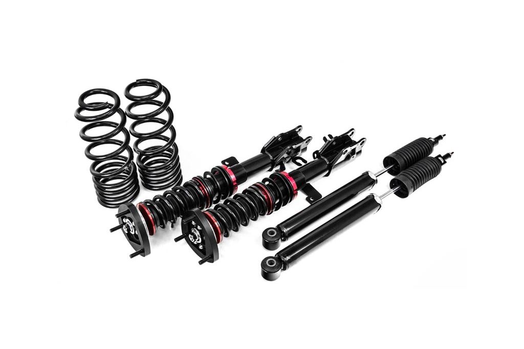 15-way adjustable damping is present on both the front and rear of the CS coilover kit. This allows you to fine tune how your car reacts to bumps, so you can stiffen things up when you get to the track and then add some comfort back for the drive home. Damping adjusters are easy to access and can be done without disassembly or tools, but a jack makes is even easier! There is also camber adjustability in the front, so you fine tune your handling or fitment with up to -1.5° of camber.