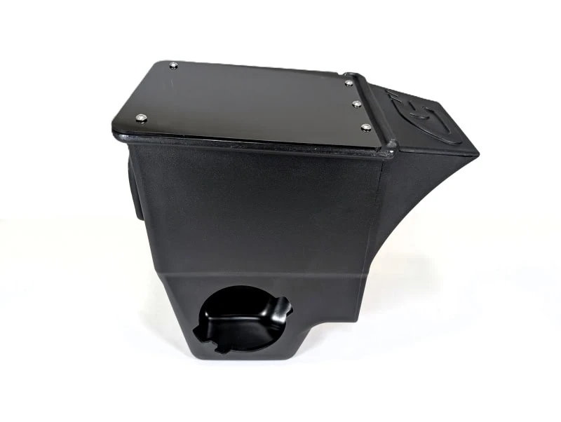 Mazda 3 Turbo SRI Cold Air Box is made using a technique called Rotomolding and the specific material used is HDPE Plastic that has a thickness of 5mm or 0.190in. This material has been used on existing CorkSport parts such as the 2021+ Mazda 3 Turbo Inlet Pipe and has demonstrated great durability and resistance to the elements. For the access lid, transparent acrylic was selected to provide a view into the Cold Air Box so the filter and MAF housing could remain on display.